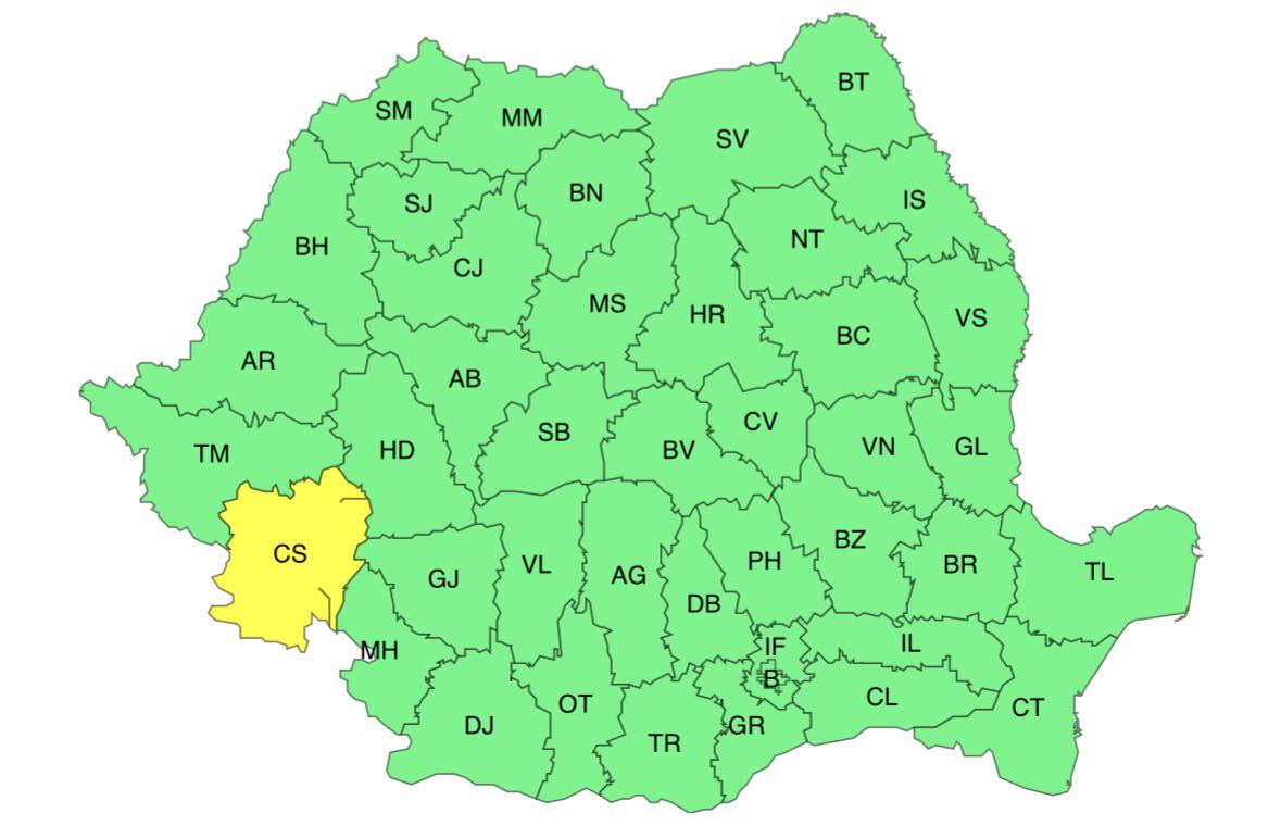 De asemenea, a fost emisă o atenționare meteorologică cod galben de vânt pentru județul Caraș-Severin.